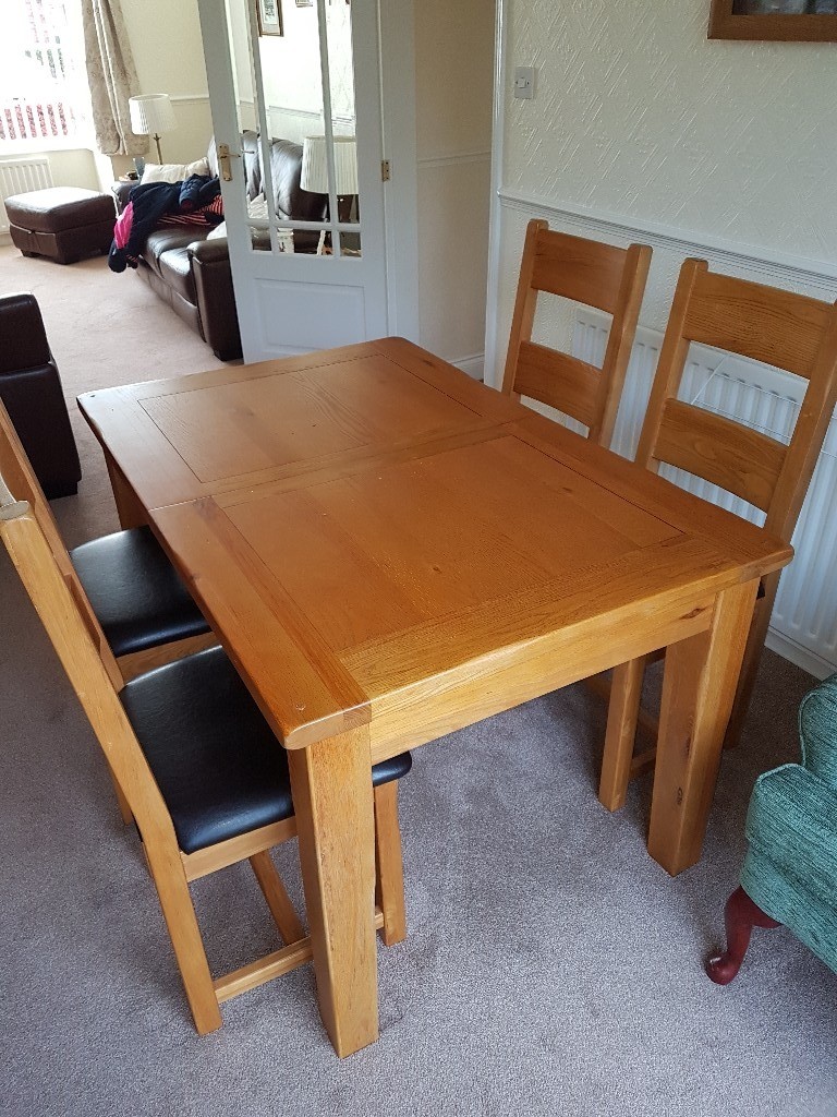 Solid Oak Extending Dining Table and 4 Scroll Back Fabric ... from i.ebayimg.com T008 solid red oak dining table and 4 chairs univonna. We have a wide range of styles and shapes to choose from, so you're sure to find a set that suits you and your space. Don't forget to bookmark glass dining room table and 4 chairs using ctrl + d (pc) or command + d (macos). Habitat skandi wood dining table and 4 beni chairs. Oak dining room table and 4 chair oval dining room table 58 long plus 2 leaves each 16 wide. It is mounted on wooden frame. Our small dining sets feature space saving oak dining tables in a choice of shapes and designs including round, square and rectangular in natural and dark finishes paired with complementary dining chairs in a vast range of chic designs. A wide variety of oak dining room table and chairs options are available to you, such as modern, traditional, and european.