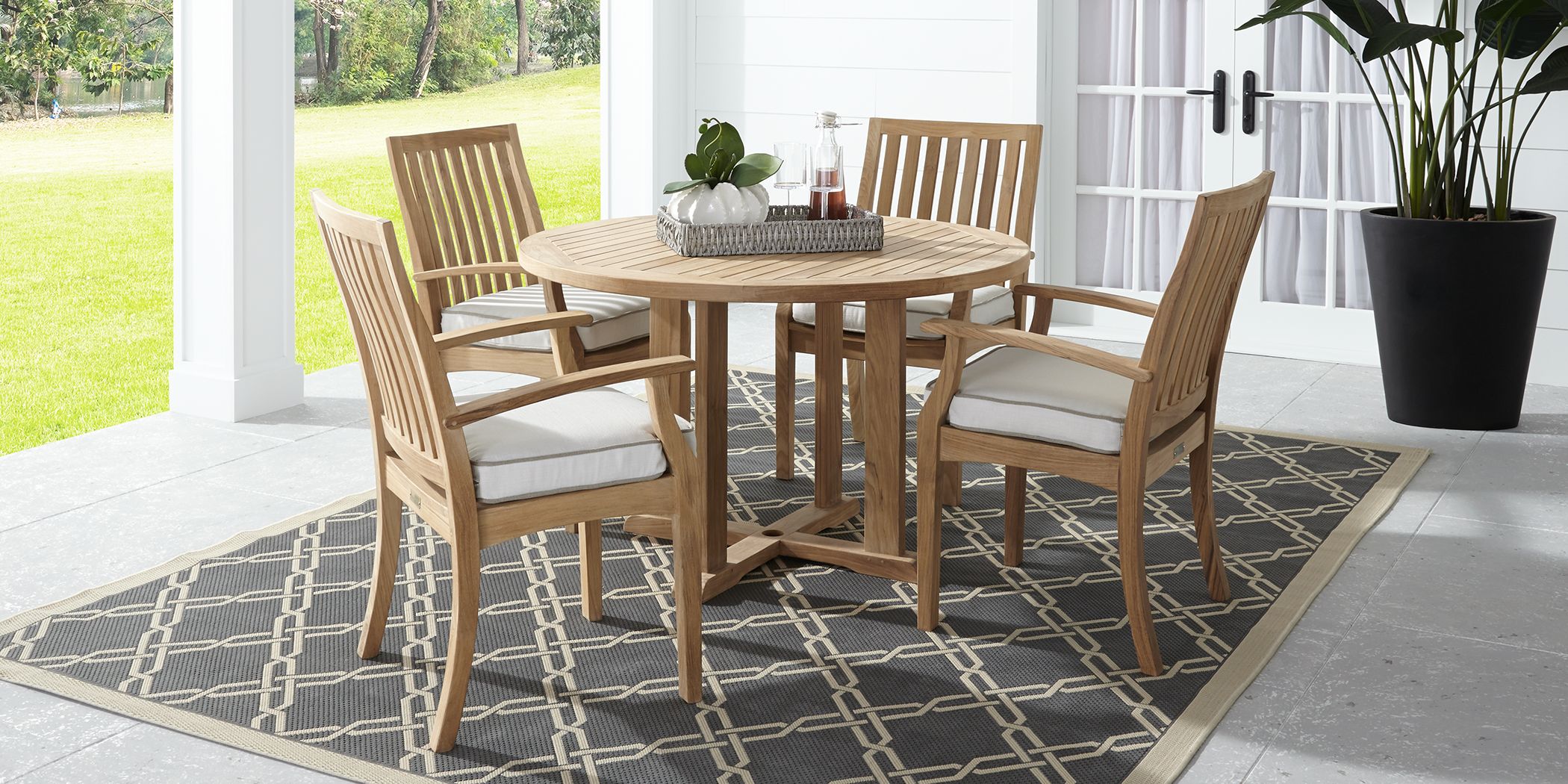 Rio Teak 7pce Round Timber Outdoor Dining Settings Outdoor Furniture Superstore from www.outdoorfurnituresuperstore.com.au Unwind in the fresh air with a divine outdoor sofa set in a contemporary silhouette. We carry teak extension tables and regular teak dining tables. Our solid teak dining tables come in a variety of styles + shapes (oval, rectangular, round, square). Set two stacking patio chairs beside a metal outdoor side table to create a simple balcony. Your search round teak dining table. Naturally finished teak wood and invite you to sit back watch the sunset or relax into breezy chat with friends and family. Create a backyard oasis with a teak outdoor dining table. Enjoy al fresco living with our range of luxury garden furniture & designer outdoor furniture sets.